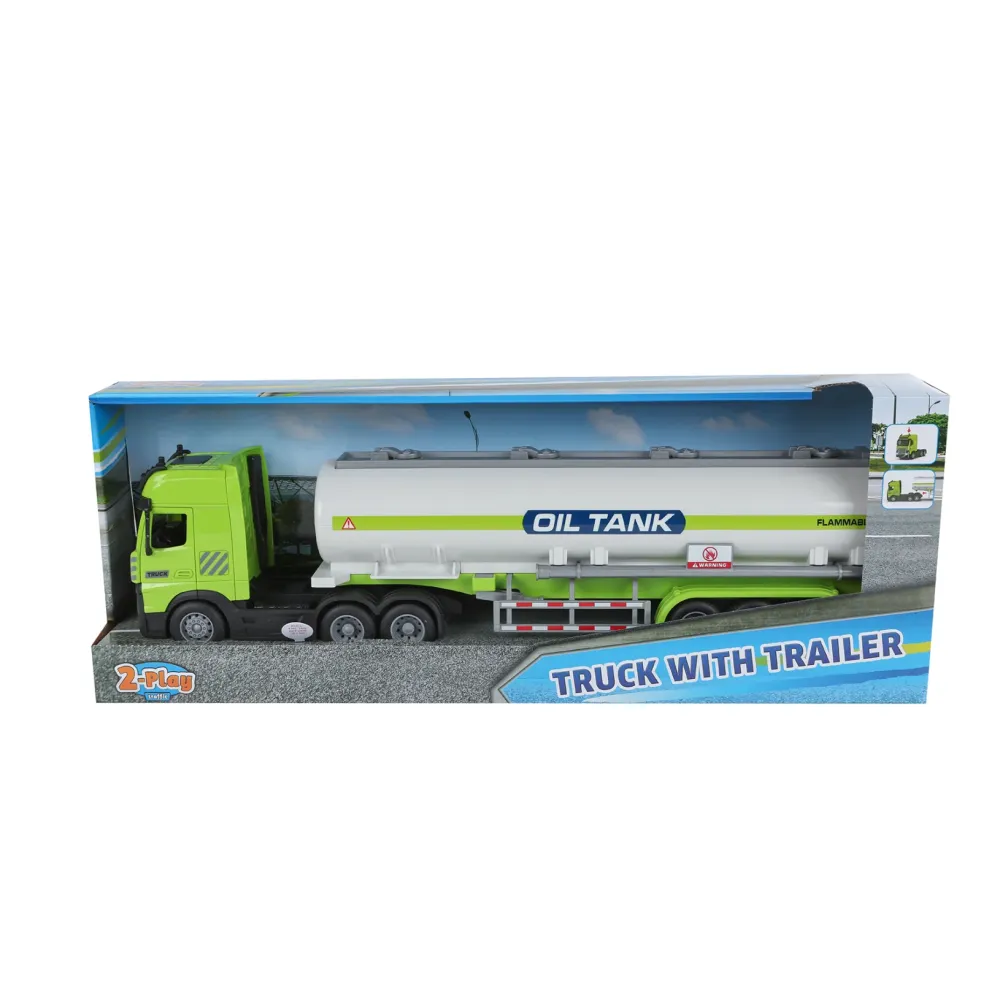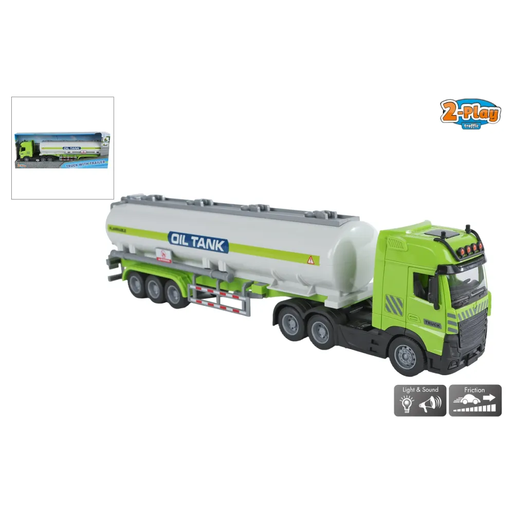 2-Play Vrachtwagen met tank-oplegger frictie licht en geluid