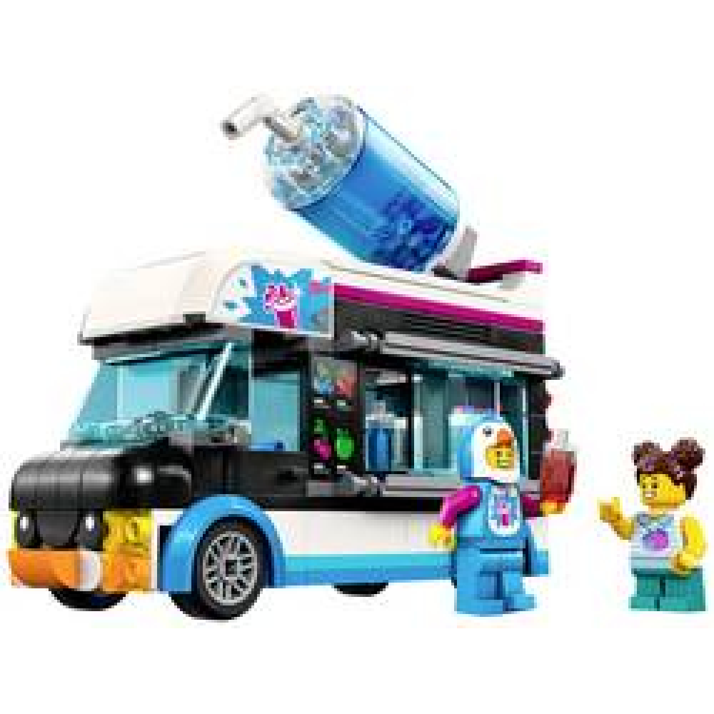 Zorg voor een zomerse sfeer met de LEGO City Pinguïn Slush truck. Deze auto met pinguïnthema heeft gave functies en mogelijkheden voor fantasierijk spelen voor kinderen, inclusief een bereidingsruimte met 4 'slushmachines' en een schuifluik. Voeg de klant en de verkoper in pinguïnpak toe en de pret kan beginnen!