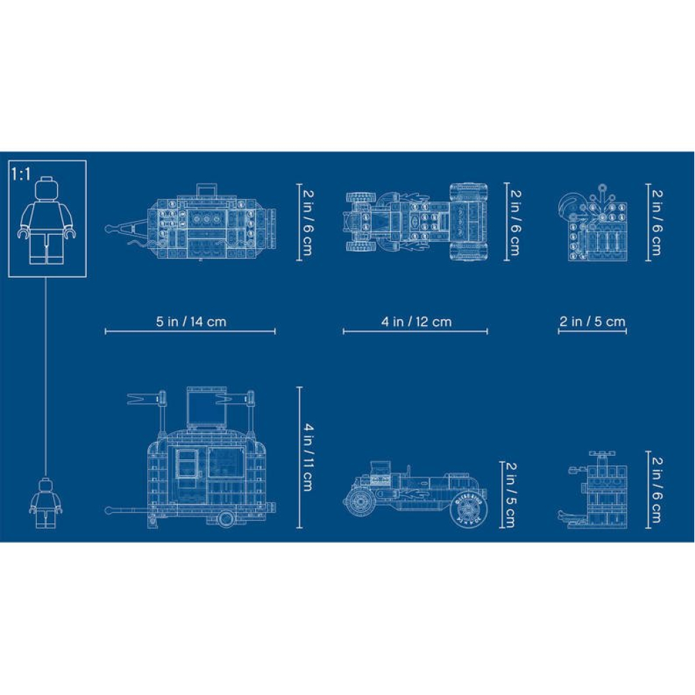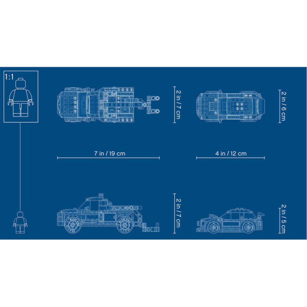 - Inclusief een speelgoedgarage, een caravan en coole voertuigen, waaronder een sleepwagen, een hot rod en een raketmotor, plus 7 minifiguren onder wie LEGO® City televisiepersonages Tread Octane en Harl Hubbs.
