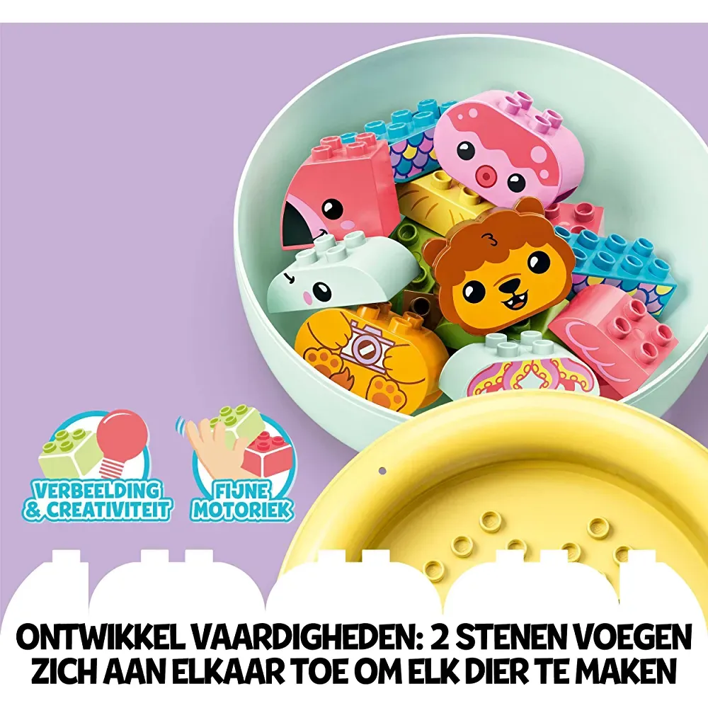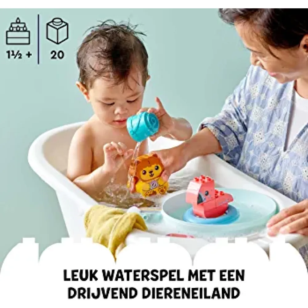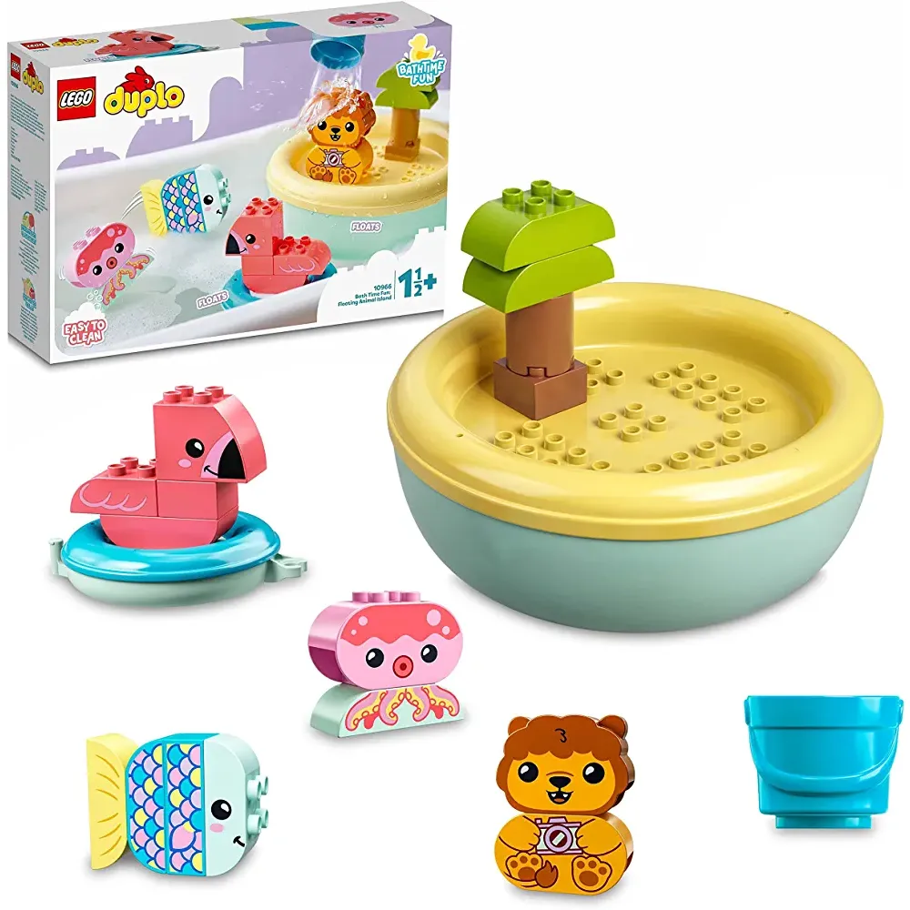 - Multifunctioneel badspeelgoed – LEGO® DUPLO® Mijn eerste pret in bad: drijvend diereneiland (10966) is een veelzijdige, eenvoudig te reinigen speelset met een eiland dat ook te gebruiken is als opbergbak