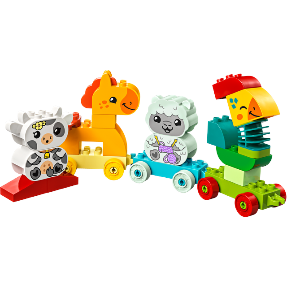 - Dierenvoertuigset – deze LEGO DUPLO Mijn eerste dierentrein set voor kinderen vanaf 18 maanden bevat 4 speelgoed dieren en 3 afneembare duwwagons voor creatieve rollenspellen