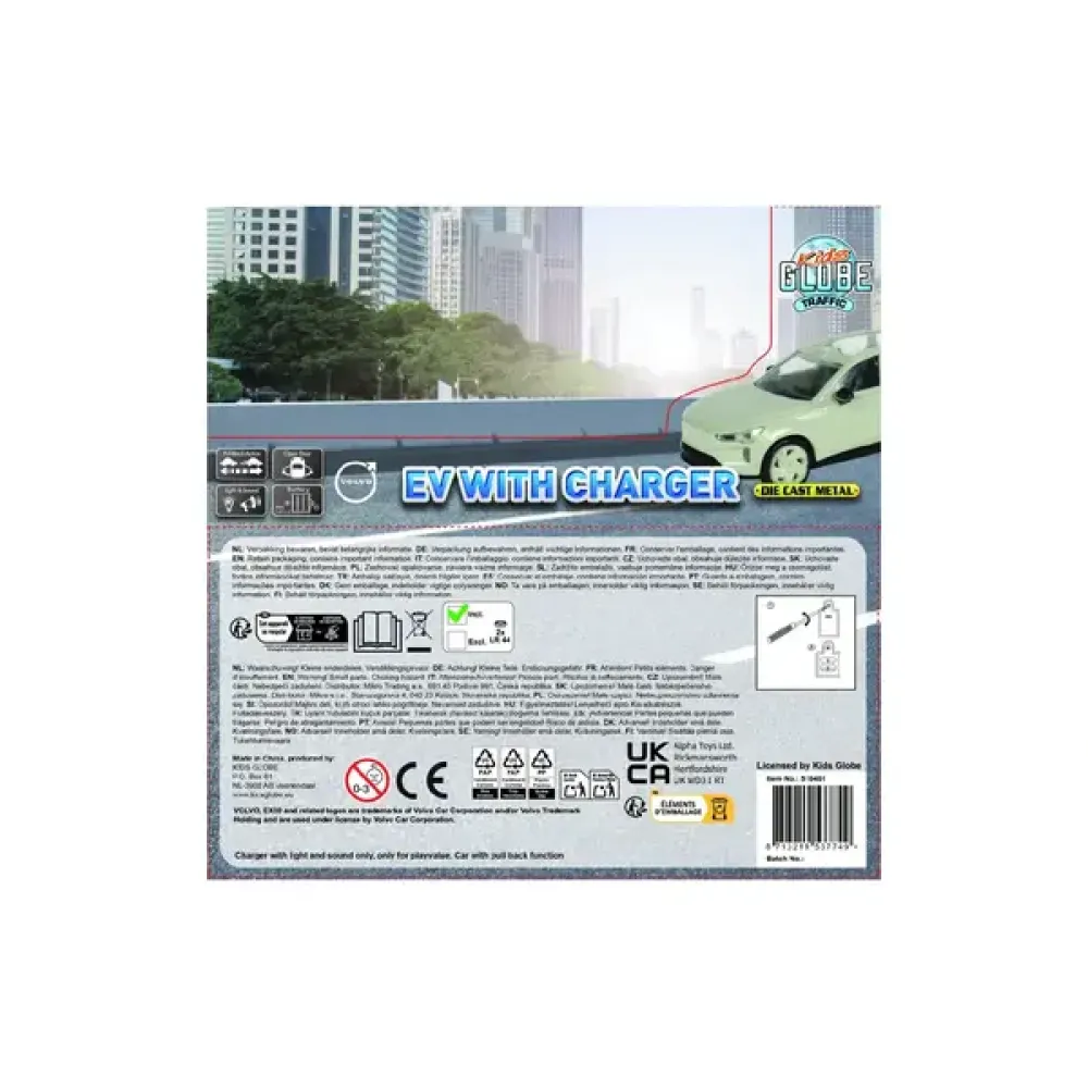 Kids Globe Volvo EX90 met oplaadpaal - met licht, geluid en pull back functie 510401