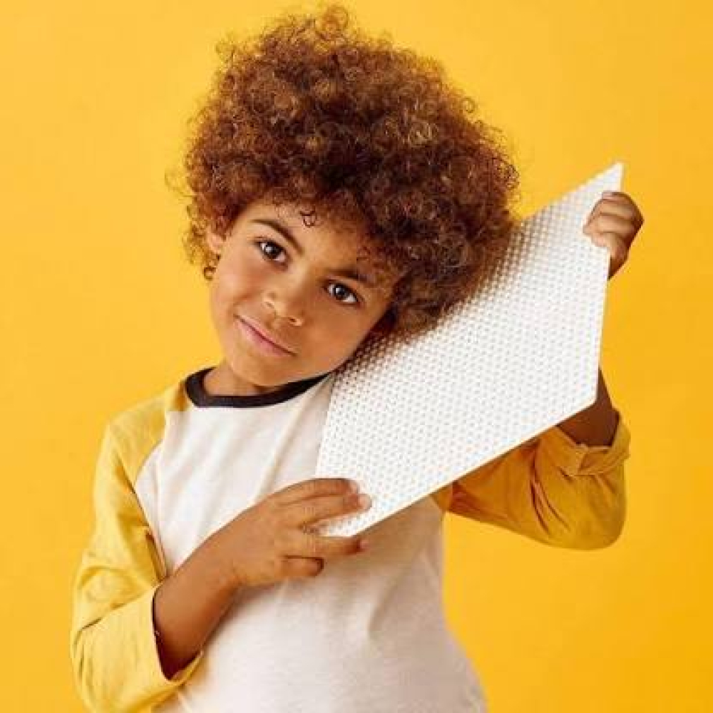 Deze witte bouwplaat van 32x32 noppen opent een duizelingwekkende wereld van fantasierijke mogelijkheden – van besneeuwde winterlandschappen tot heldere zonnige stranden en, omdat de bouwstenen in elke positie grip hebben (zelfs ondersteboven!), van steile berghellingen tot opstijgende ruimteschepen!