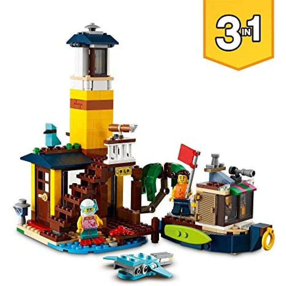 LEGO 31118 Creator 3-in-1 Surfer Strandhuis, Vuurtoren en Zomerhuis met Zwembat, Speelgoed voor Kinderen van 8 Jaar en Ouder