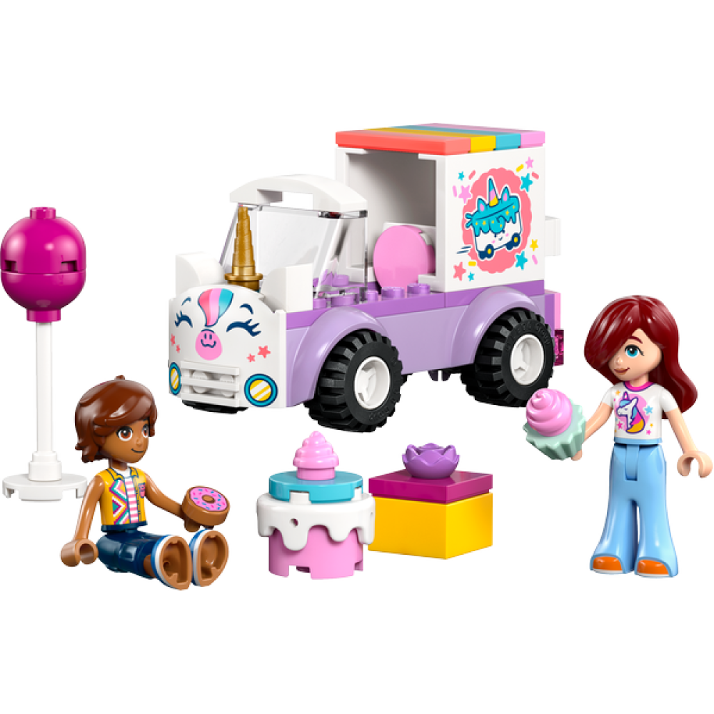 Met de LEGO Friends Eenhoorn Taartbezorgauto (42675) kunnen jongens en meisjes een schattige eenhoornauto bouwen voor urenlang speelplezier en rollenspel. De set bevat 2 minipoppetjes, Paisley en Leo, die de fantasie van kinderen prikkelen en hen aanmoedigen tot rollenspel. De set bevat een verjaardagscadeau, een taartfiguurtje, een ballon en een donut. Dankzij de vele leuke details stimuleert de speelset de verbeelding en het vertellen van verhalen.