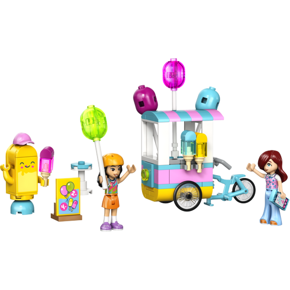 - Inspireer kinderen om hun eigen verhalen te bedenken terwijl ze de rol van klant en verkoper aannemen met deze LEGO Friends set, inclusief een etenskraam, een fiets, ballonnen en ijslolly's