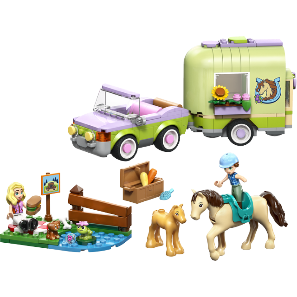 Meisjes en jongens kunnen op allerlei manieren met deze dieren speelgoed set spelen. Ze kunnen verhalen bedenken voor Autumn en Matilde terwijl ze in de speelgoed auto rijden. De trailer kan open om het speelgoed paard en het veulen te begroeten. Daarna kunnen kinderen het paard opzadelen en zich klaarmaken voor een rit. De set met LEGO auto bevat ook een kleiner bouwmodel met een picknickplaats, een wegwijzer, een meer en een hek om overheen te springen.