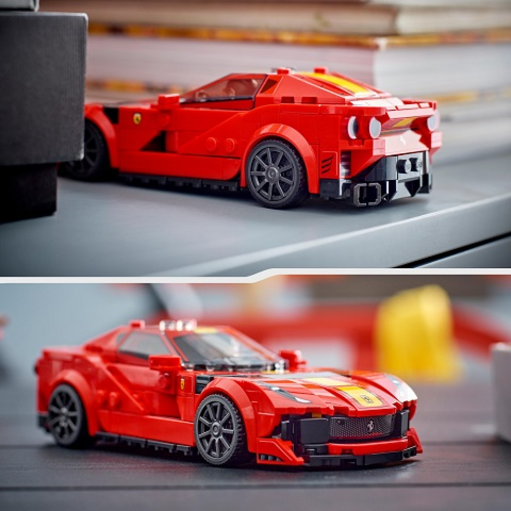 - De constructie speelgoed set bevat een LEGO Speed Champions modelauto replica van de Ferrari 812 Competizione plus een coureur minifiguur met helm en pruik