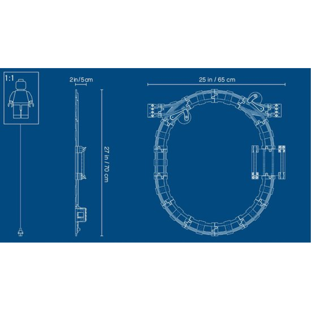 - De set omvat een recht railelement, 10 gebogen railelementen, 2 eindpunten, 2 wissels, een spoorwegovergang en een rode actiesteen om de trein te laten stoppen.
