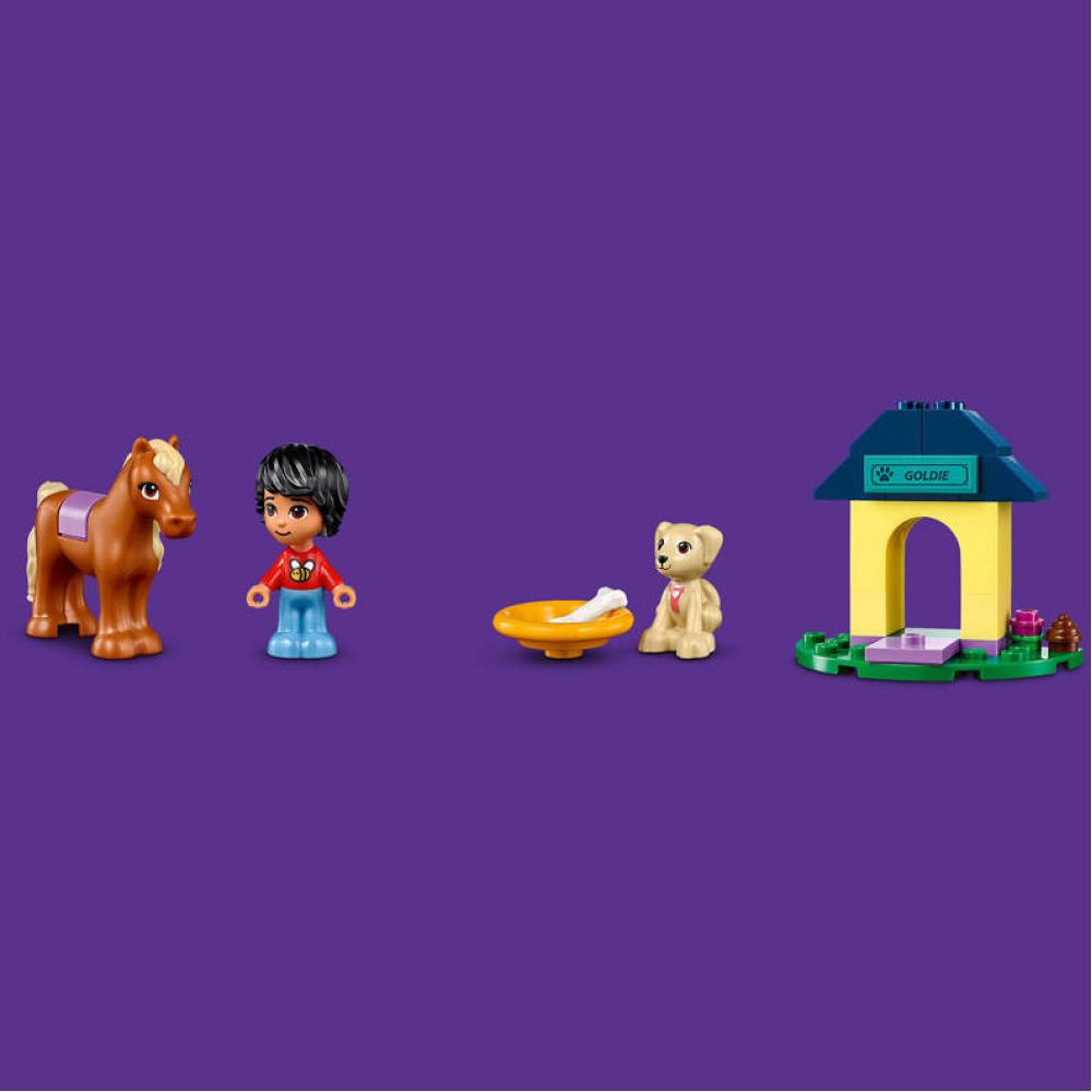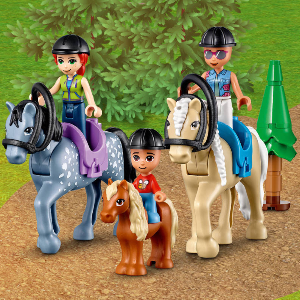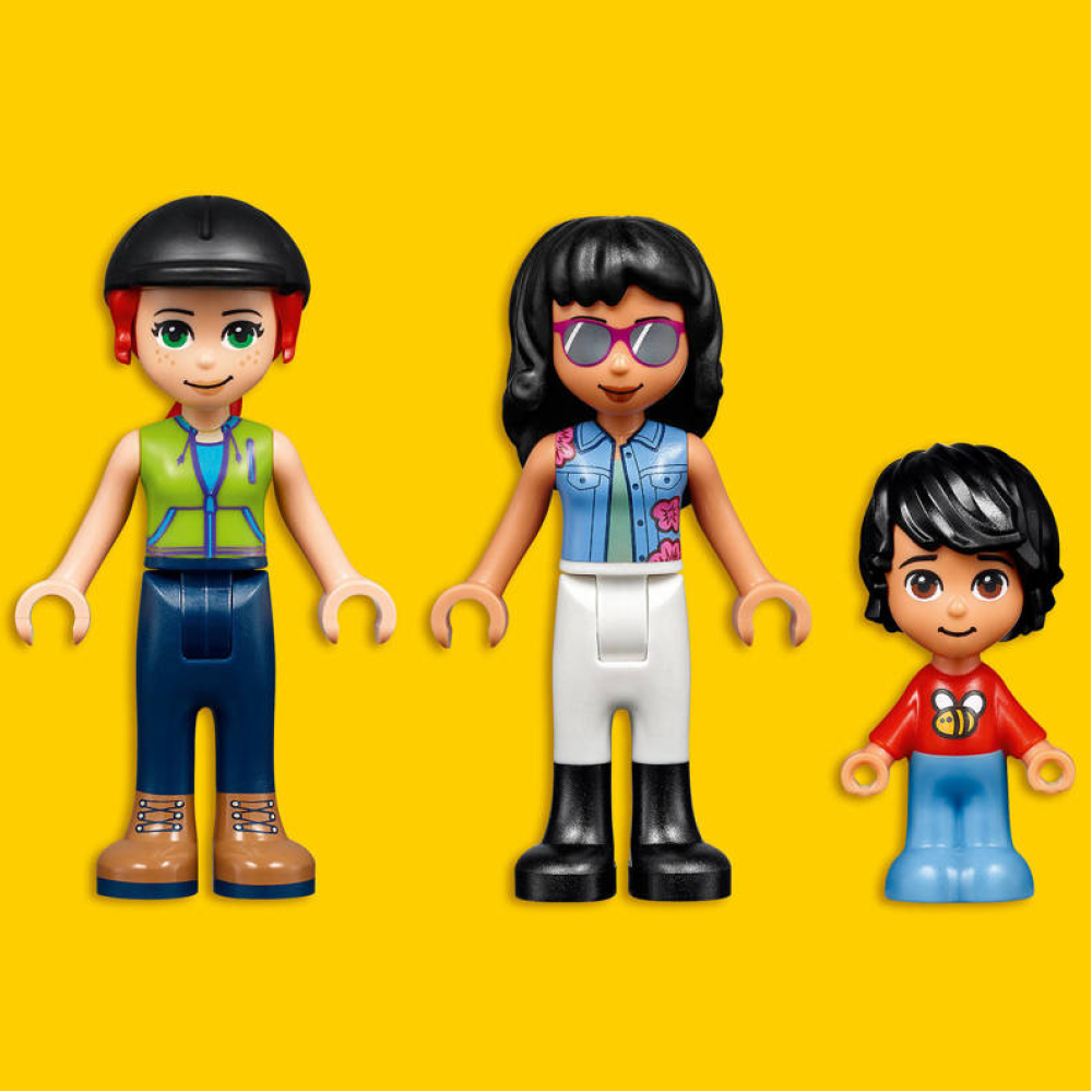 - De set bevat in totaal 7 figuren: LEGO® Friends Mia en Savannah, een micropoppetje, een speelgoedhond voor kinderen en een pony. Er zijn ook 2 speelgoedpaarden met beweegbare hoofden voor realistisch speelplezier.