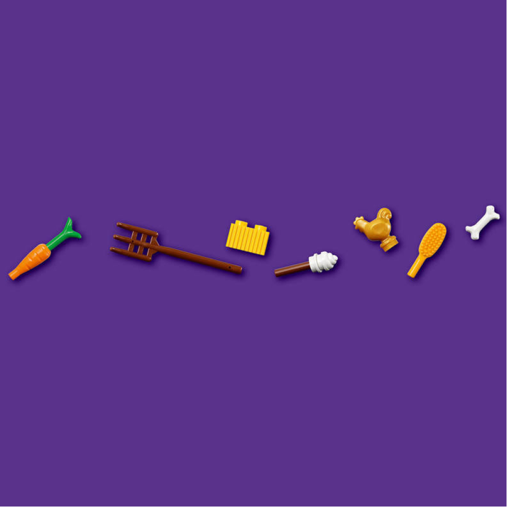 - De hoeve met 3 verdiepingen heeft een stal op de begane grond met daarboven een keuken, slaapkamer en eetkamer. Buiten kunnen kinderen de hond welterusten zeggen in zijn hondenhok en daarna lekkere marshmallows roosteren boven het kampvuur.