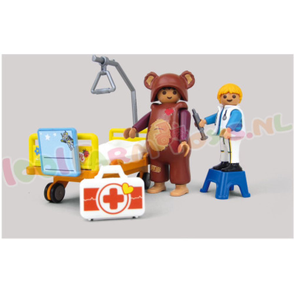 Accessoires: 1 berenkostuum met capuchon. 1 ziekenhuisbed met aanpasbaar patiëntenbord. kruk. 1 doktersset met apparatuur. 1 stickervel met diverse pleisters en verbanden.