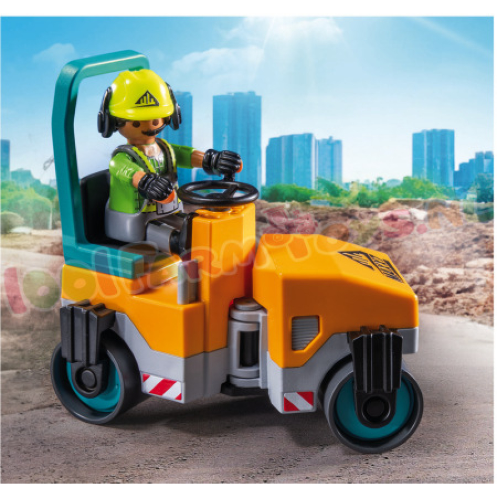 Ga aan de slag op de PLAYMOBIL Wegenbouwplaats! De draaiende wielen van de wals en de stoel met figuurtjes maken het verdichten van asfalt een fluitje van een cent. terwijl de wegversperringen met knipperende gele lichten het gebied veilig houden. Gebruik het lasermeetapparaat en de staaf om perfecte precisie te garanderen bij elk project. Met gedetailleerde accessoires zoals helmen. een bezem. een schop en een mobiele radio brengt deze set authentiek wegenbouwplezier tot leven.