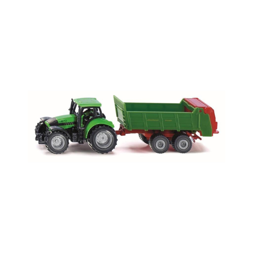 De top-tractor van Deutz voor gebruik op de akker. Met veel kracht trekt hij de universele strooier van Strautmann over de net voorbereide akker. De 2-assige strooier beschikt over een achterklep die open kan en een flexibel instelbare doseerschuif.
