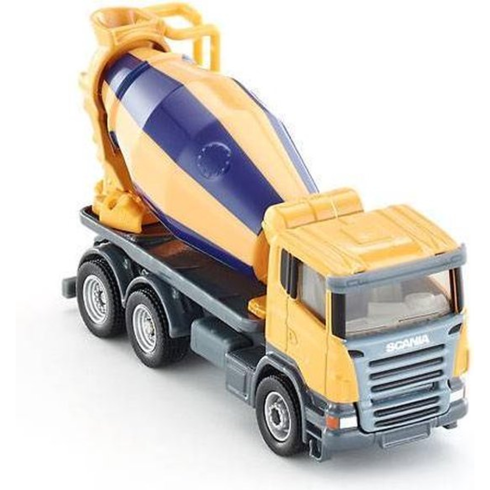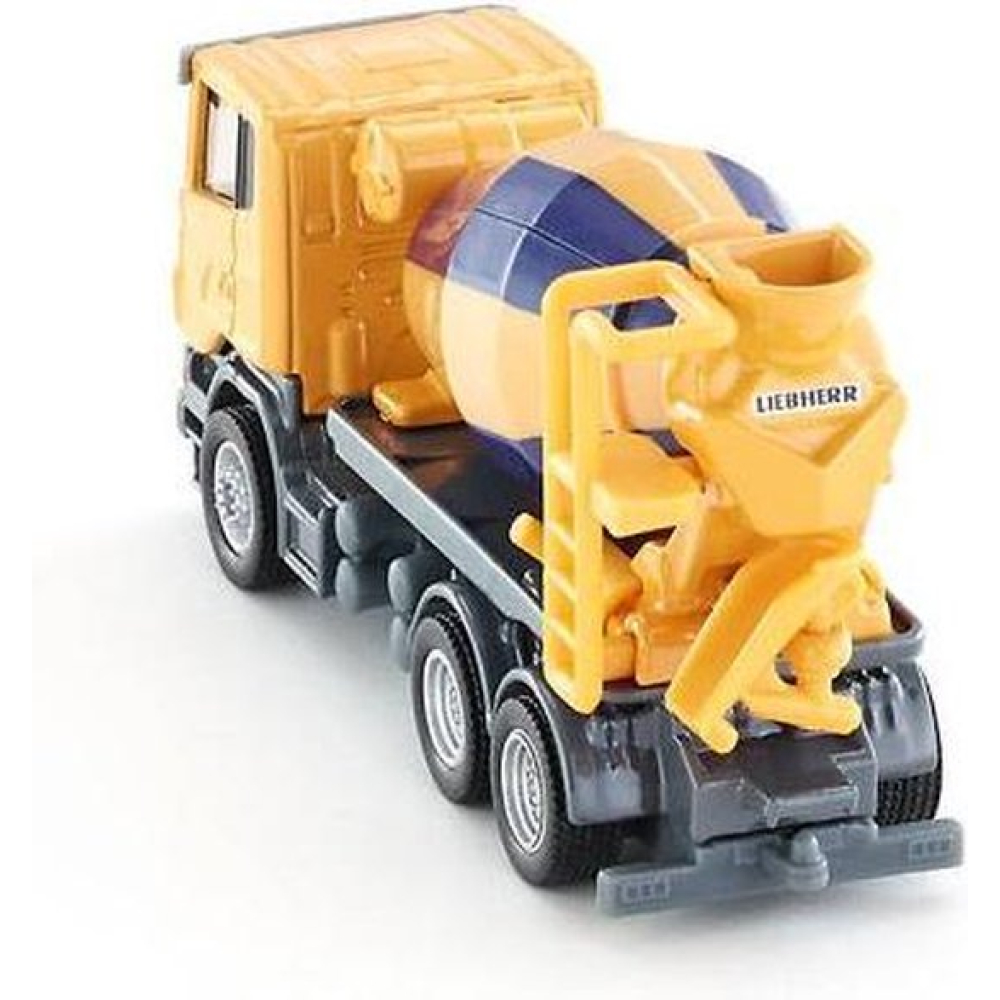 De trommel kan draaien en heeft een print in een opvallend streepdesign. Transportbeton naar de bouwplaats brengen, is de taak van de betonwagen. Het 1:87 model met een opbouw van Liebherr op een 3-assig chassis met een chauffeurscabine van Scania neemt deze taak moeiteloos voor zijn rekening. De trommel kan draaien en heeft een print in een opvallend streepdesign. Als extra speelfunctie is de opbouw kantelbaar. Schaal 1:87 Afmeting: 10 x 3 x 5 cm (lxbxh).