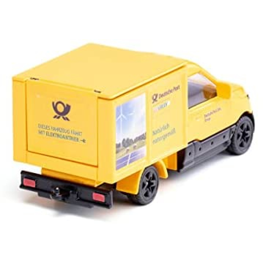 Er is post! In de stad wordt de post nu elektrisch bezorgd. Van de Streetscooter is alleen maar een zacht zoemen te horen. De elektrische transporter is consequent ontworpen aan de hand van de eisen van de pakketbezorging. Compact, wendbaar en in het stadsverkeer ook nog vlot op pad. De toegepaste koplampen onderstrepen het markante design aan de voorkant. Bij het gedetailleerde model op schaal 1:50 zijn de chauffeurscabine en het chassis van metaal en kan het deksel van de kunststof opbouw worden geopend.