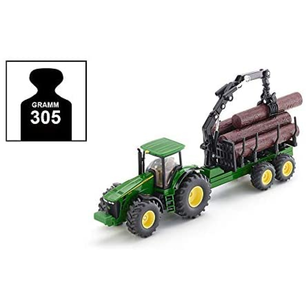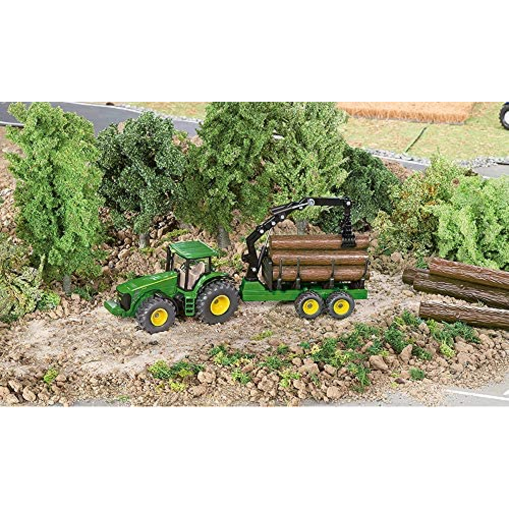 De imposante John Deere 8430 met een bijpassend gekleurde boomstamaanhangwagen is zeer geschikt voor zwaar werk in het bos in de kinderkamer. De tractor en het aanhangermodel zijn eenvoudig uitgevoerde, robuuste, voordelige en optisch uitstekende stukken speelgoed op een kindvriendelijke schaal om mee te spelen. De boomstamaanhangwagen, met beweegbare kraan en grijper, is geschikt om de bijgeleverde kunststofboomstammen net als in het echt te kunnen verladen. Geschikt voor kinderen vanaf 5 jaar.