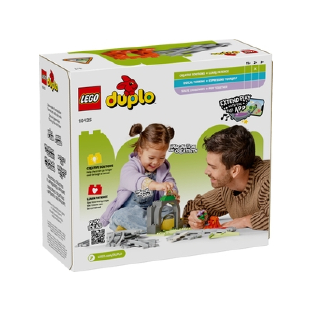 - Speelgoedset met treinrails – peuters vanaf 2 jaar breiden hun LEGO® DUPLO® spoorwegavonturen uit en oefenen belangrijke vaardigheden met de Treintunnel en rails uitbreidingsset